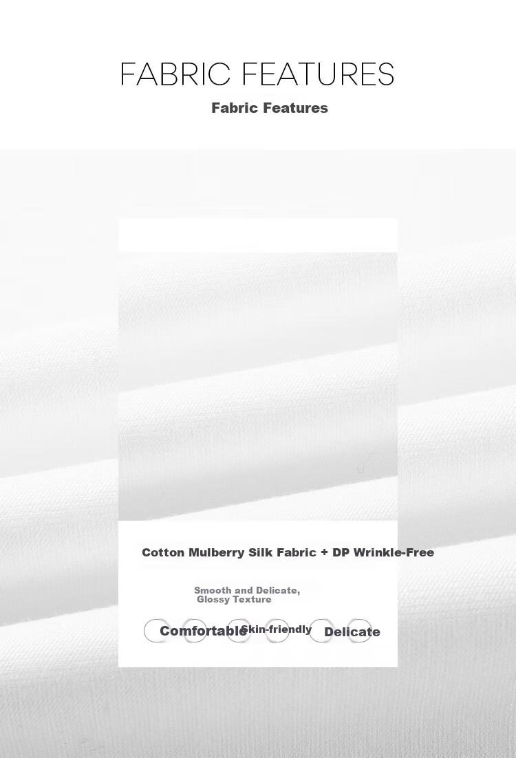 **Fabric Features:** Cotton mulberry silk fabric + DP wrinkle-free, smooth and delicate, glossy texture, comfortable, skin-friendly, delicate.