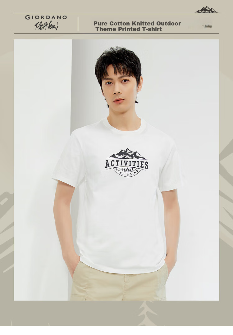 Style: Knitted outdoor theme printed T-shirt